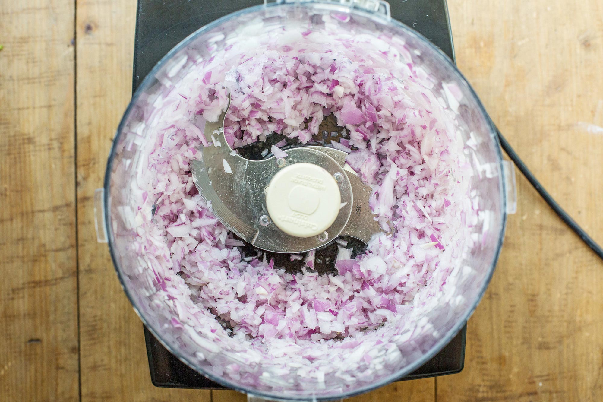 Красный лук Шаллот — вы крупно нарежете лук-шалот и репчатый лук, а затем измельчите их в кухонном комбайне.