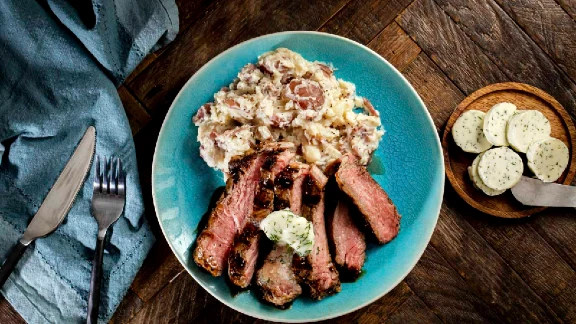 Этот рецепт стейка Монреаль, маринованного Рибай с картофельным пюре, использует наш стейк Монреаль со специями Маринад от La Grille в пакете. Он также использует излишки маринада в качестве доливки, которой вы можете смазать стейк, пока он на гриле. Результат — сочный стейк с роскошным маслянистым картофельным гарниром, который вы не забудете в спешке.