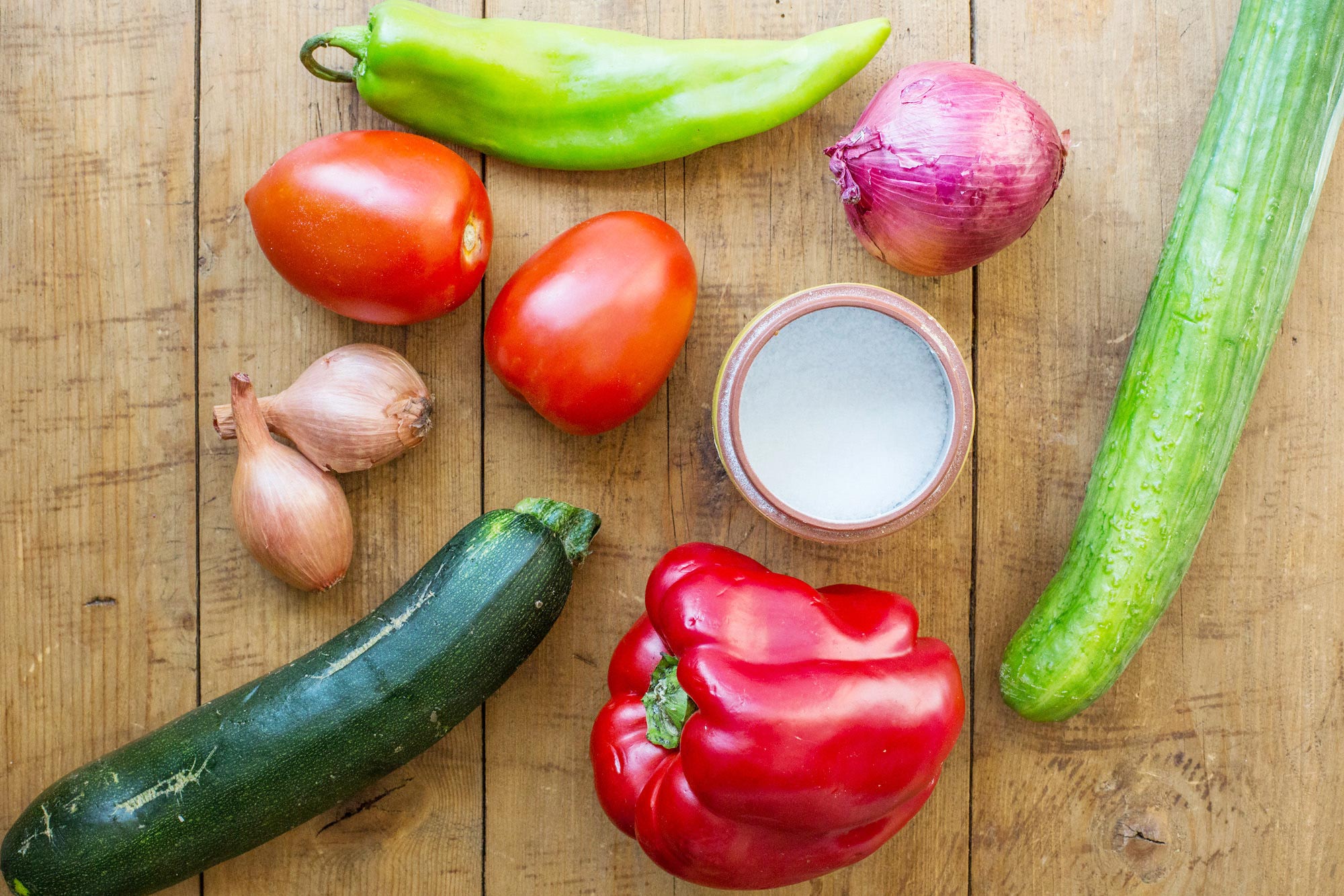 Немного чего-нибудь кислого (традиционно это уксус — в частности, хересный уксус), может быть, немного перца (возможно, сладкого и острого вместе) и немного оливкового масла для мягкости и общего вкуса и аромата, чтобы сбалансировать холодный суп. После этого многое зависит от вашей интерпретации (или, может быть, ничего не зависит — это зависит от того, насколько вы привержены традициям).