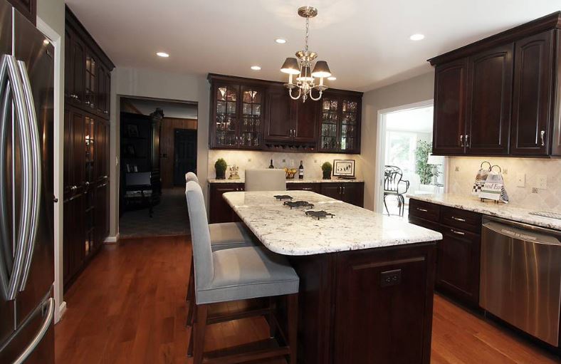 Стулья из формованного пластика. Пластик — ещё один мой любимый материал, когда я ищу сочетание стиля и практичности. Их очень легко чистить, а белый цвет всегда помогает осветлить кухню с тёмным деревом.