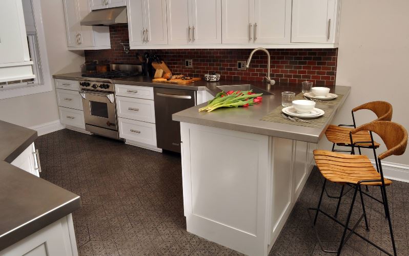 Классический французский металлический табурет Tolix выпускается со спинкой и без нее, а также в различных цветах. Мне никогда не надоедает тот индустриальный и винтажный стиль, который он добавляет кухне. Он чрезвычайно универсален и подходит как для традиционных кухонь, так и для кухонь в стиле кантри или современных кухонь. Главное – это баланс между деревом и металлом, светлыми и темными тонами, чтобы создать функциональное пространство.